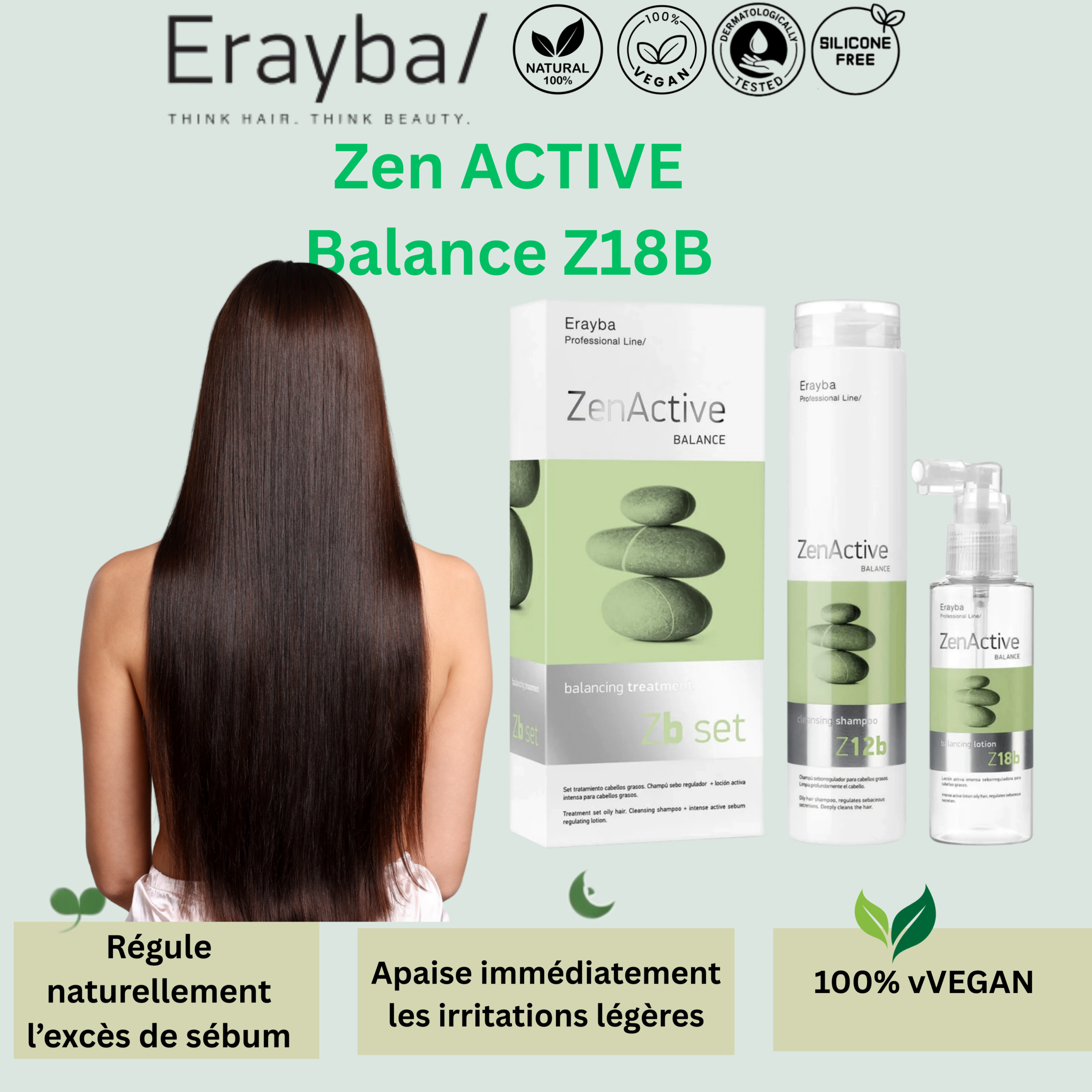 Erayba ZenActive ZB Set est un traitement équilibrant spécialement conçu pour les cheveux très gras. Il nettoie en profondeur, régule l’excès de sébum et laisse les cheveux légers, sains et parfaitement équilibrés. Idéal pour purifier le cuir chevelu et retrouver une chevelure fraîche plus longtemps.