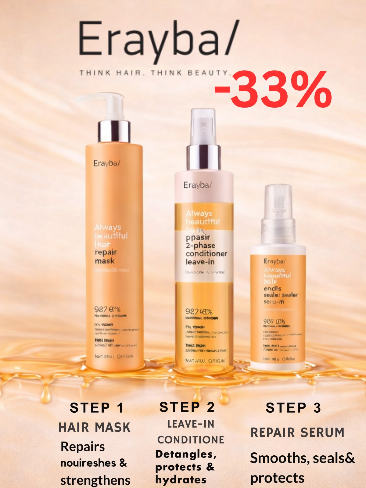 Pack Erayba Repair 3 Étapes – Masque, Leave-in & Sérum