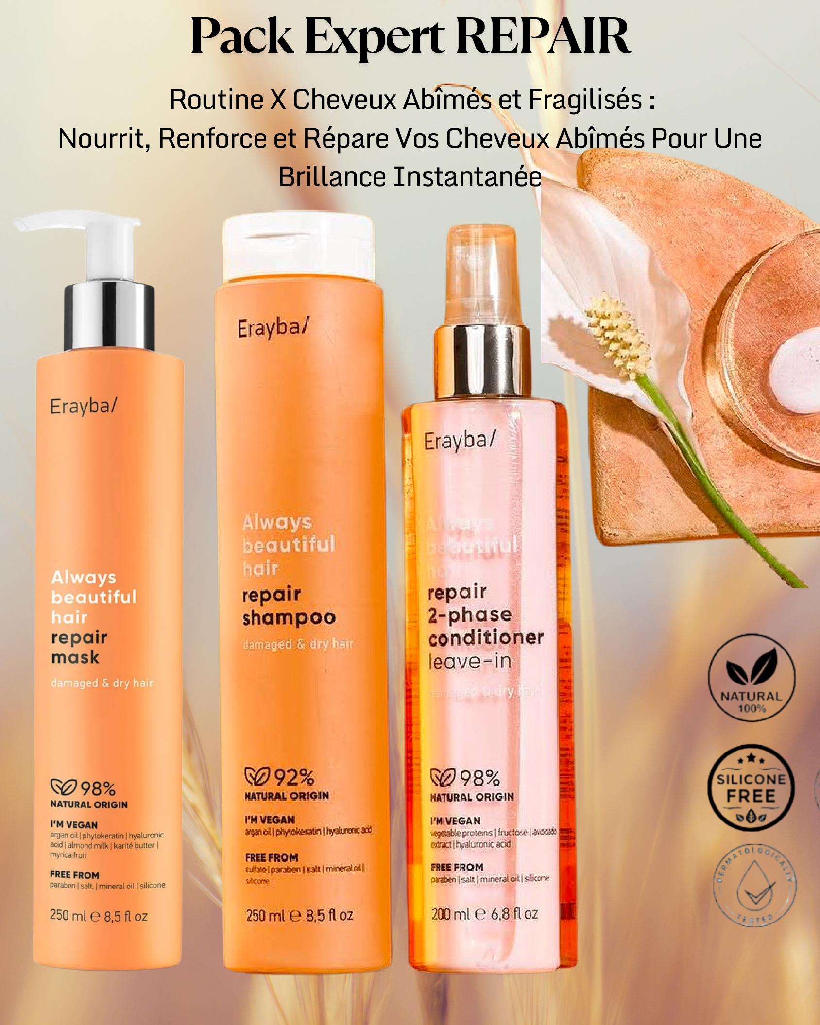 Pack Erayba Repair 3 Étapes – Masque, Leave-in & Sérum
