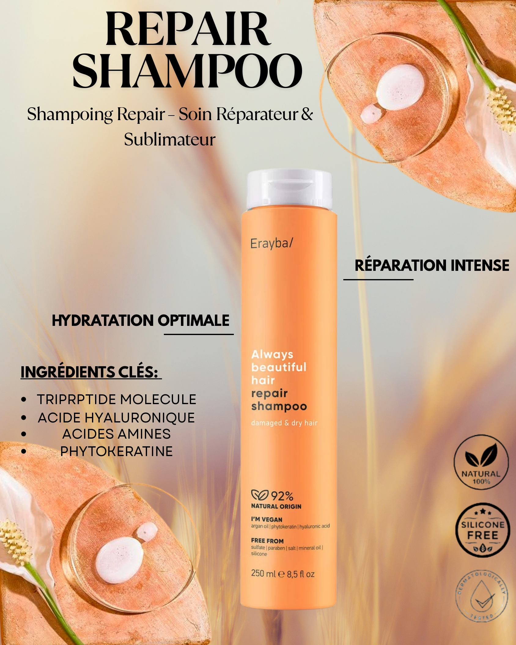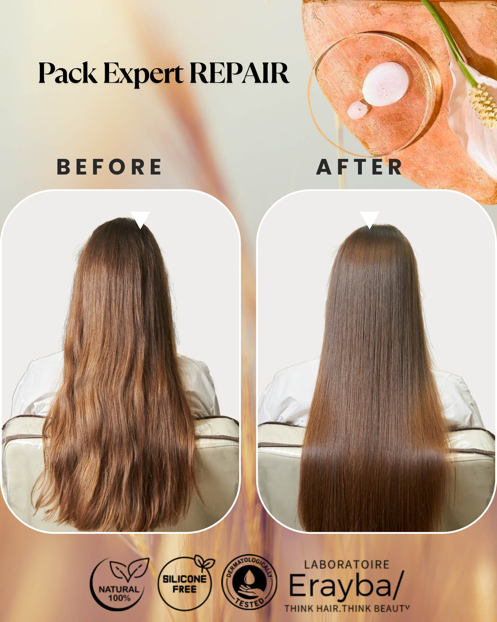 Routine complète en 3 étapes pour réparer, nourrir et protéger les cheveux abîmés. Le Pack Erayba Repair restaure la fibre capillaire, réduit les frisottis et apporte douceur, brillance et protection durable.